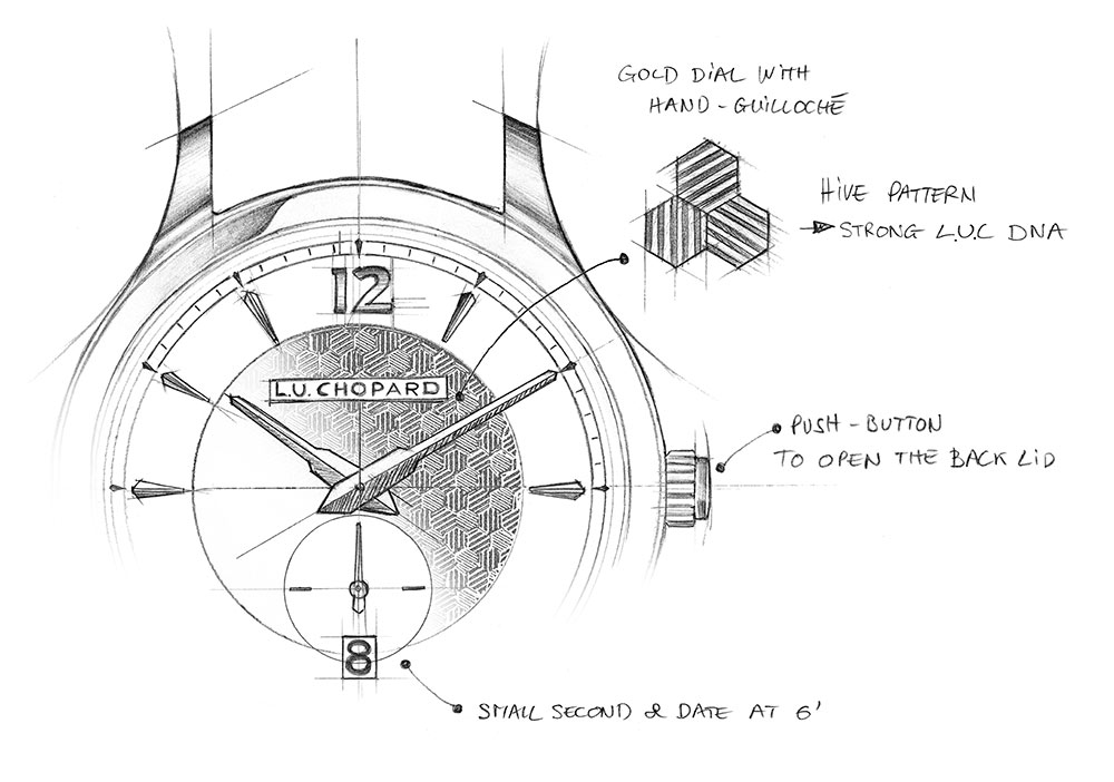 El primero marca la creación del primer reloj de la Manufactura Chopard: el L.U.C 1860, que se presentó en 1997 y que estaba decorado con un motivo central realizado en guilloché a mano. El segundo se remonta a la fundación de la Casa por parte de Louis-Ulysse Chopard. Desde su creación y hasta los años 1920, Chopard reivindicó la simbología que rodea a las abejas. Entonces, todos los relojes de Chopard llevaban grabada, tanto en el movimiento, como en el interior de la tapa, una colmena rodeada de abejas. Durante la creación de Chopard Manufacture en 1996, Karl-Friedrich Scheufele decidió recuperar esta imagen y asociarla a algunos de los modelos de la colección L.U.C, así denominada en honor del fundador de la Casa.