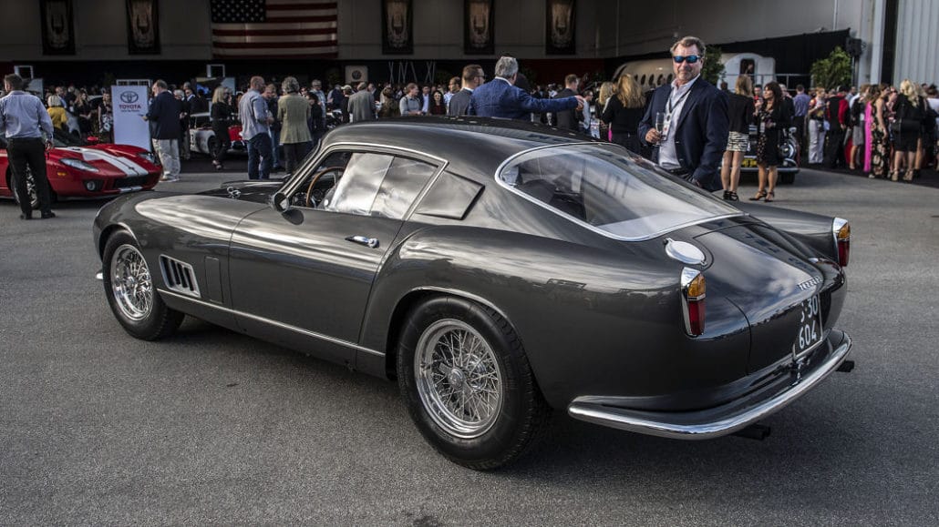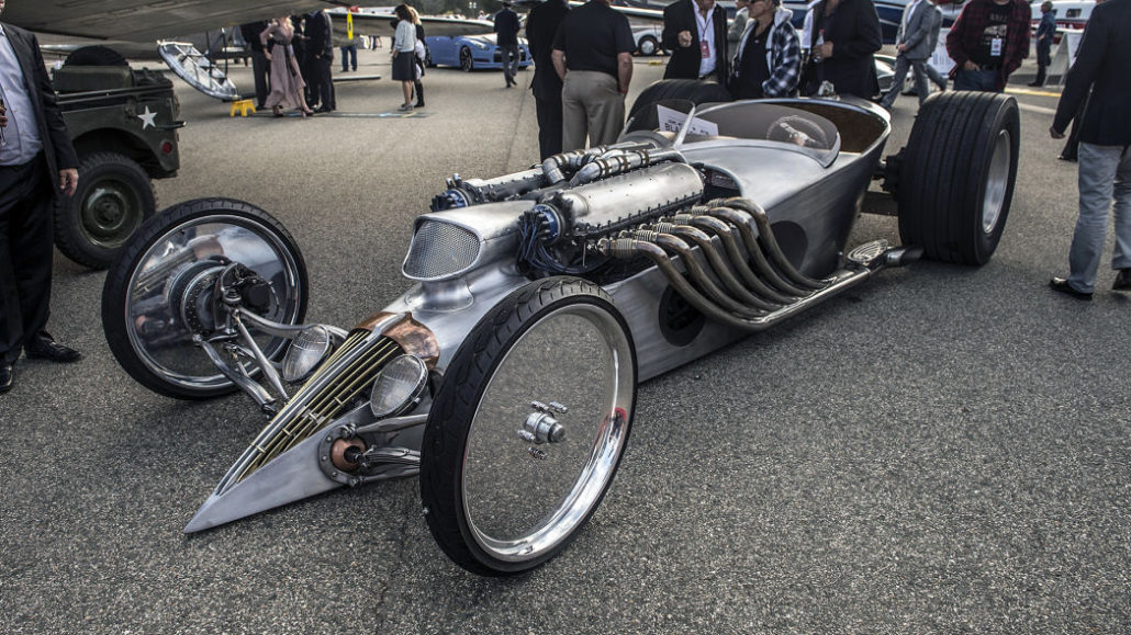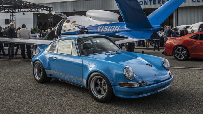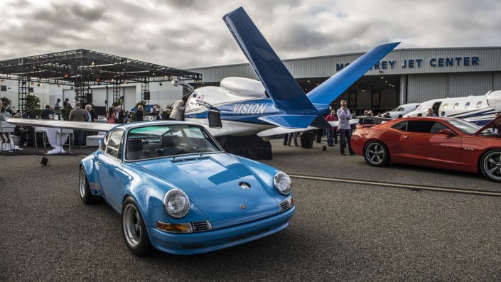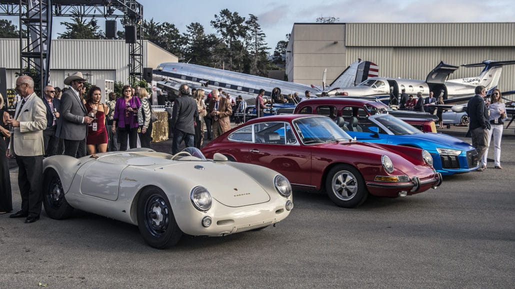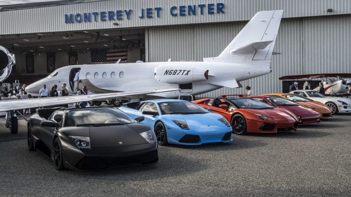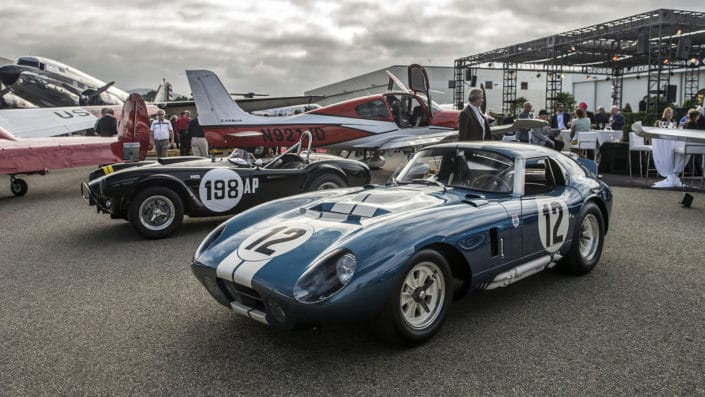 Held at the Monterey Jet Center, the revival featured an array of exotic and classic cars blended in with planes, racecars, motorcycles and luxury items like jewelry. This year the eclectic lineup of cars included vintage Ferraris and Porsches, a raised 1964 Chevy Impala, a classic Toyota Land Cruiser and a Cobra.